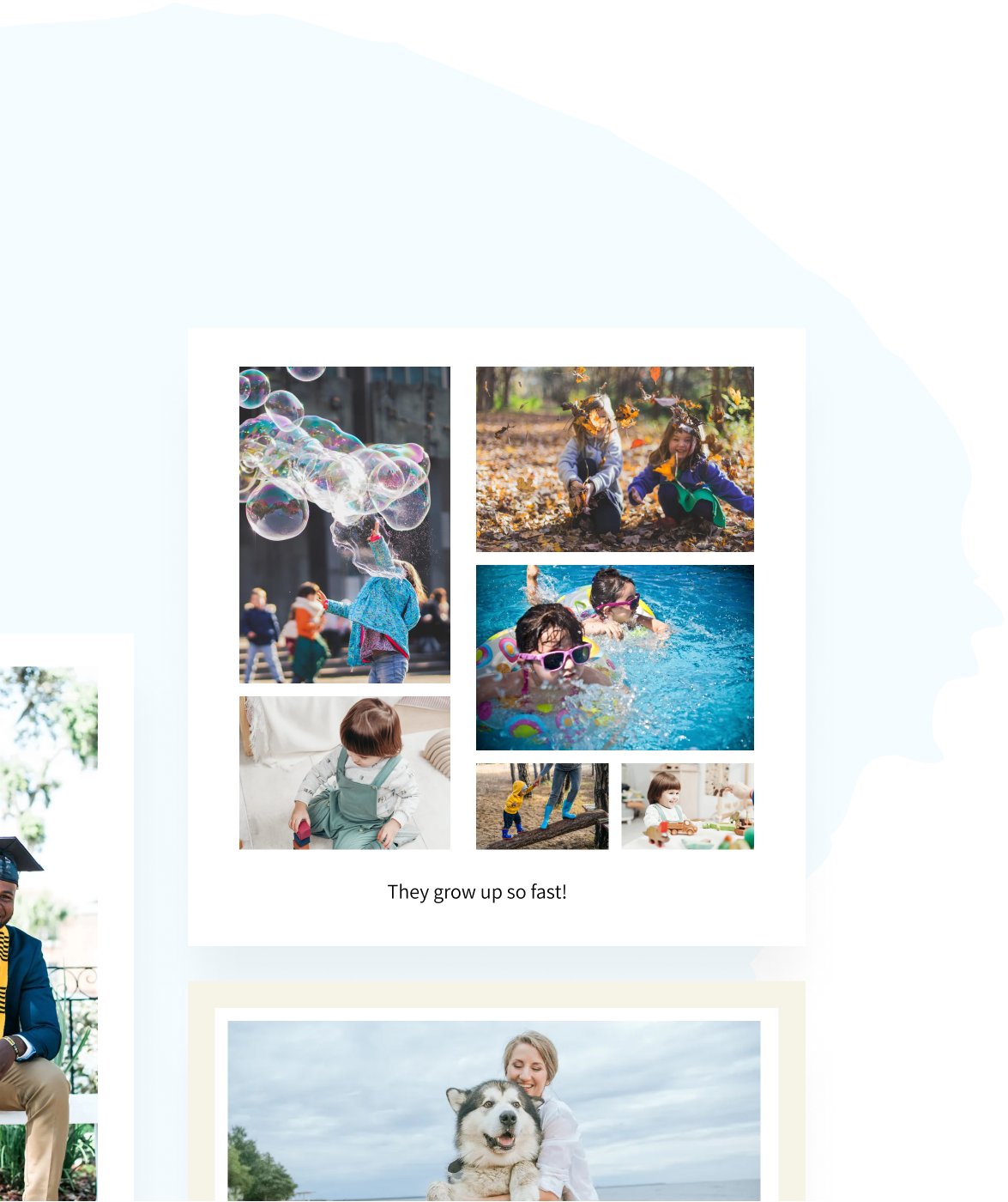 Collect messages and photos from friends and family, near and far. Our selection of templates gives everyone many options to contribute. Our automated invitation and reminder system makes gathering content a breeze.